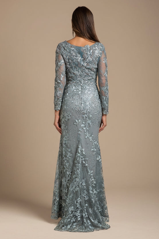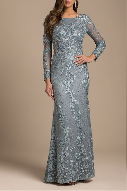 Lara 29924 - Long Sleeve Lace Dress With Lace Appliques