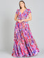 V-Neck Long Print Gown with Cap Sleeves - OUTLET