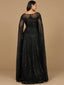 Glittering lace ballgown with an illusion neckline and flowing cape sleeves. This gown features an embellished bodice and modest coverage, perfect for your next big event!