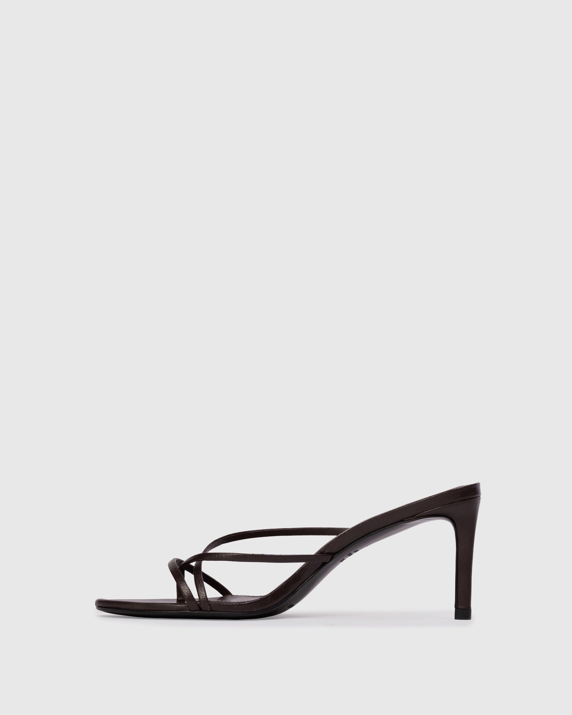 Crafted from supple, hand-buffed leather, the Carla 65 Mule epitomizes refined elegance. This sophisticated mule features a gracefully rounded toe and delicate multi-strap design with an ornamental toe ring detail, elevated by a perfectly proportioned mid heel. A timeless silhouette that transitions seamlessly from day to evening.