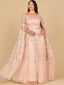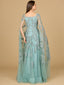 Elegant A-line gown with a high neckline and long flowing floor length cape sleeves. This gown features an embellished bodice and modest coverage with cascading embroidery, perfect for your next big event. Flowy dress for that perfect ethereal feel look! One of our best sellers for this year!
