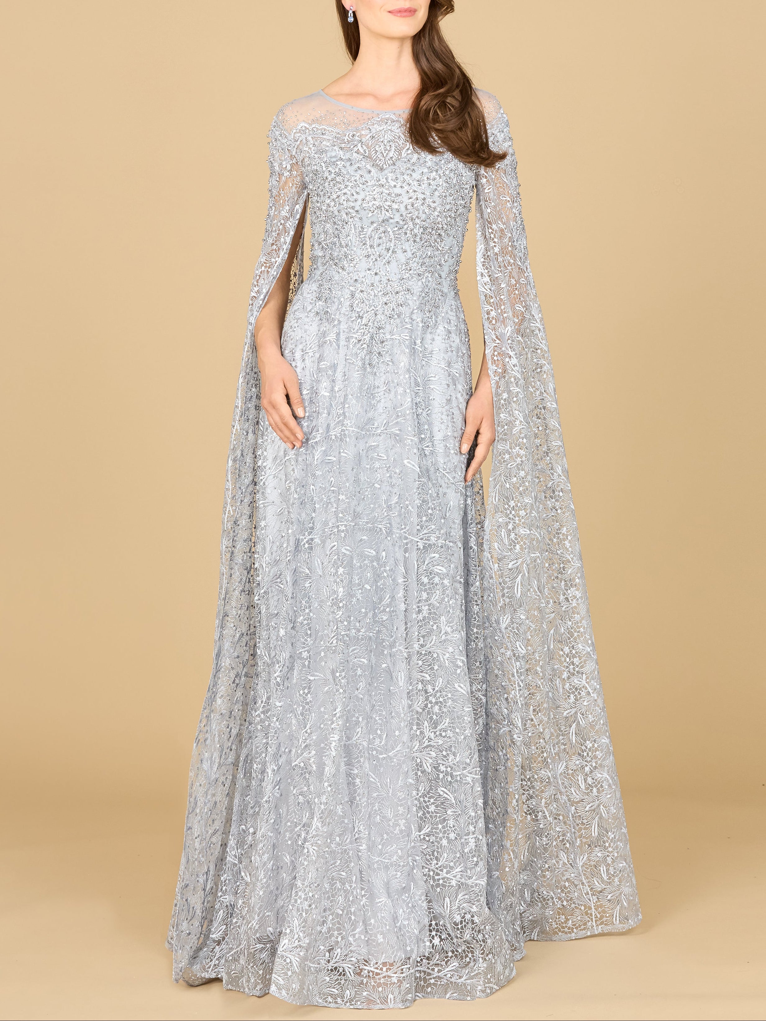Lace Gown with Dramatic Cape Sleeves | Lara 29454